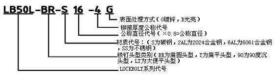 鉚釘桿徑 | 代號 | A | 扁圓頭型(LB50LB) | 扁平頭型(LB50LT) | 沉頭型(LB50L90) | |||||||||